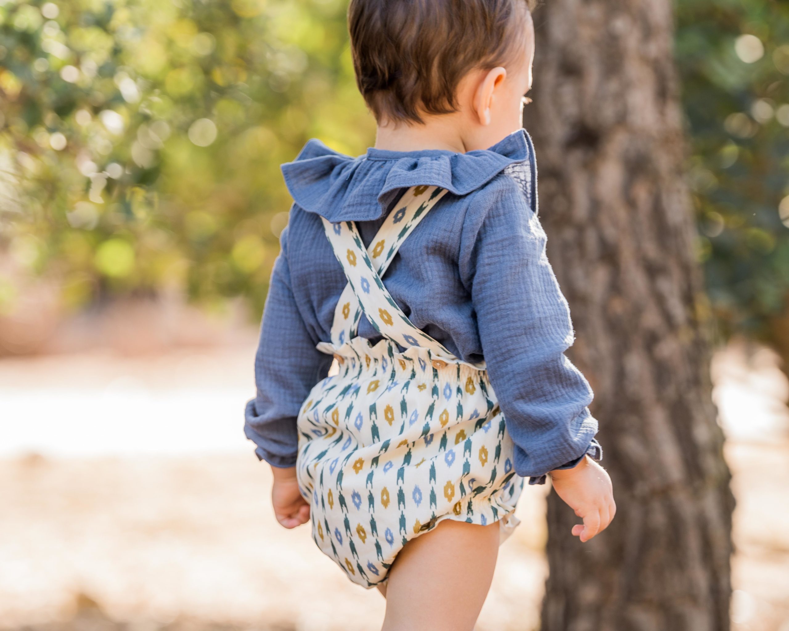 El básico que debes tener para tu bebé es esta camisa con cuello volante, mangas con goma, camisa sencilla.