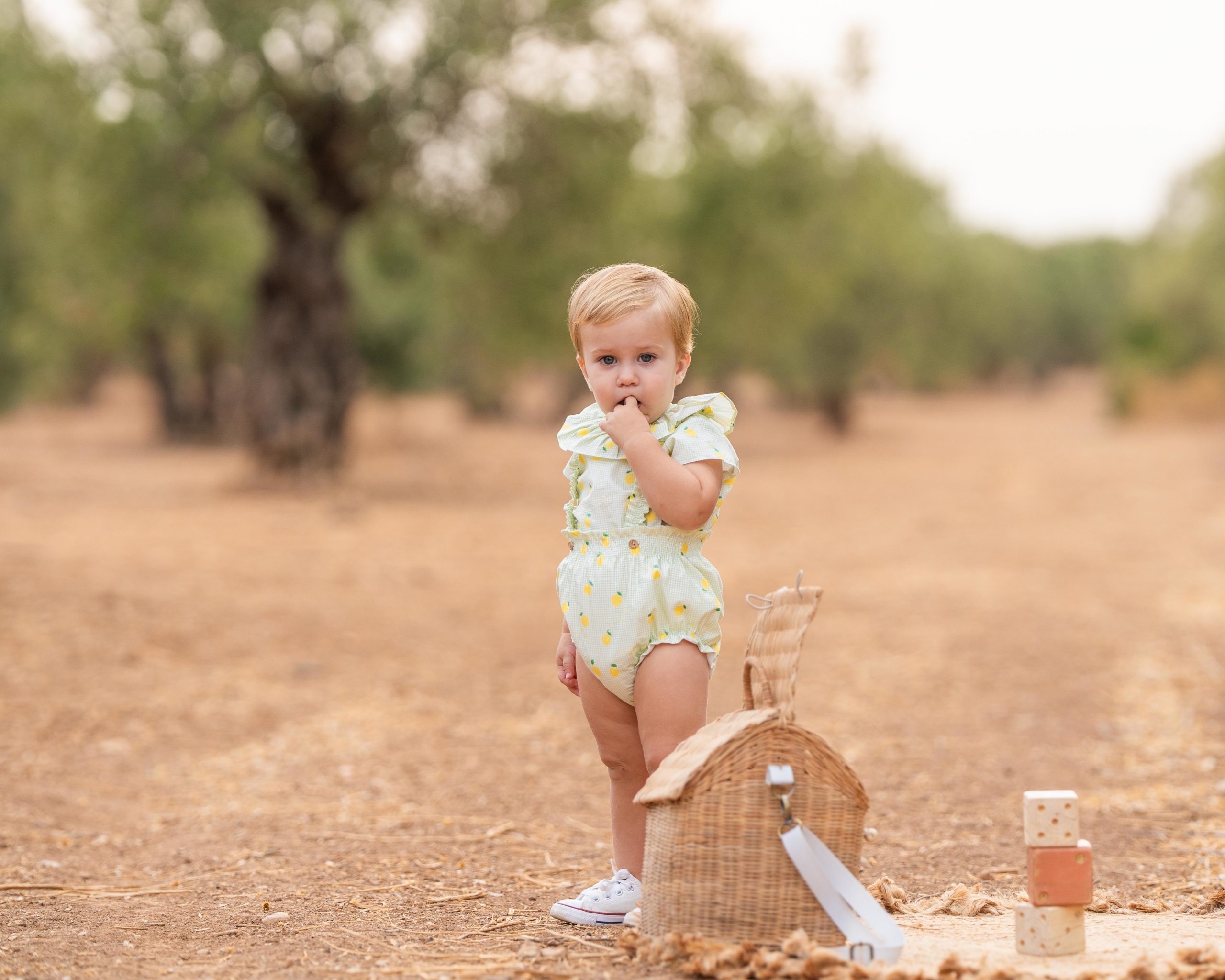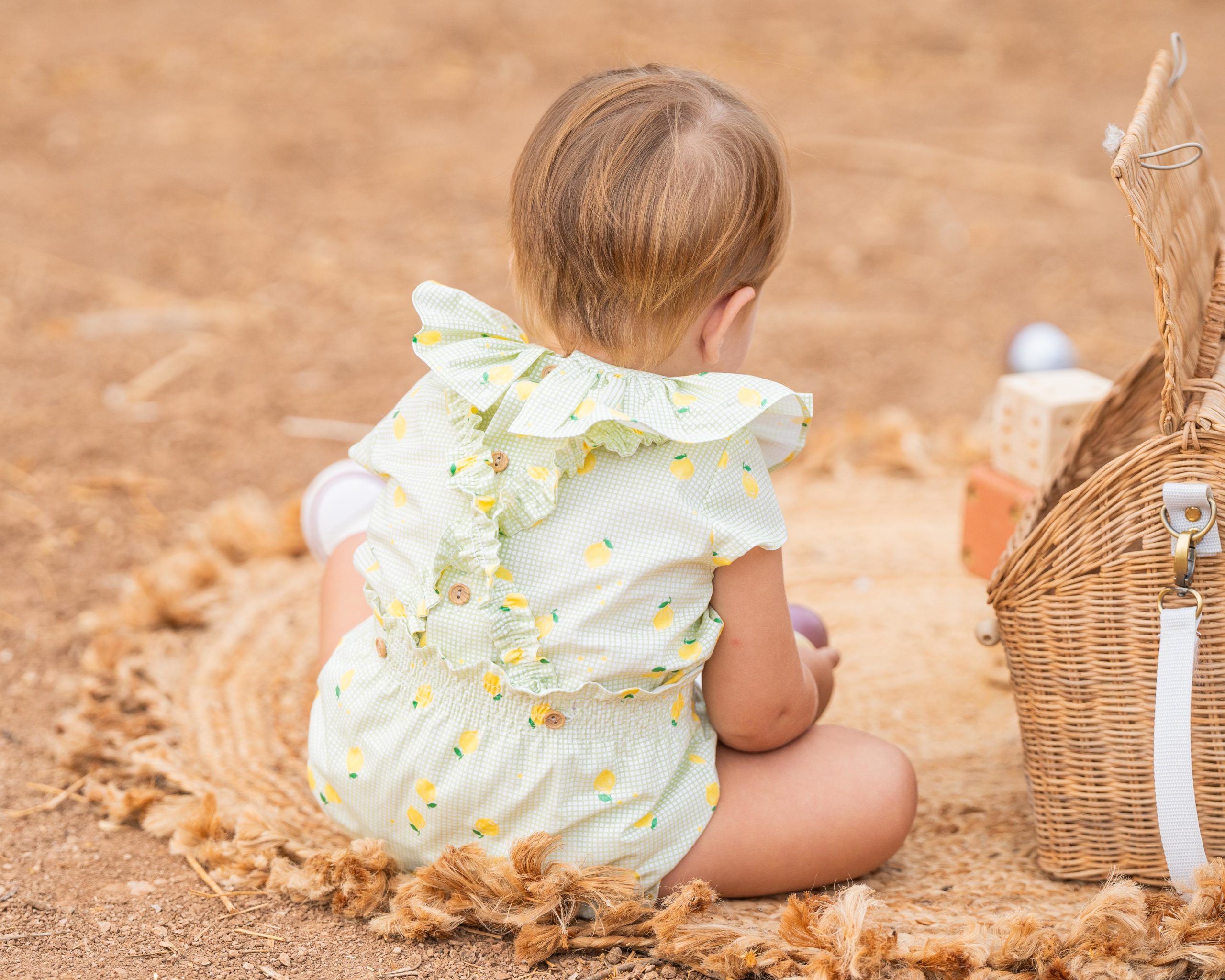 Tejido exclusivo para Miji de cuadros verdes combinados con limones.