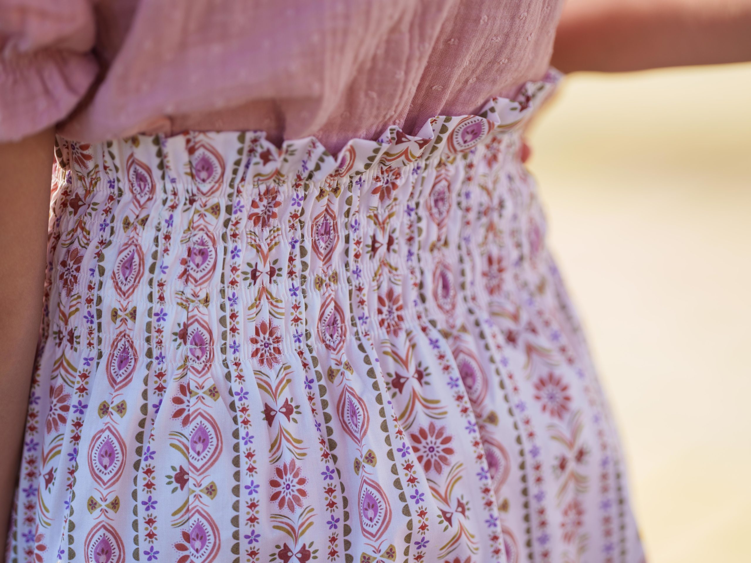 Falda súper favorecedora con cintura engomada en tejido de flor india EXCLUSIVO para MIJI.
