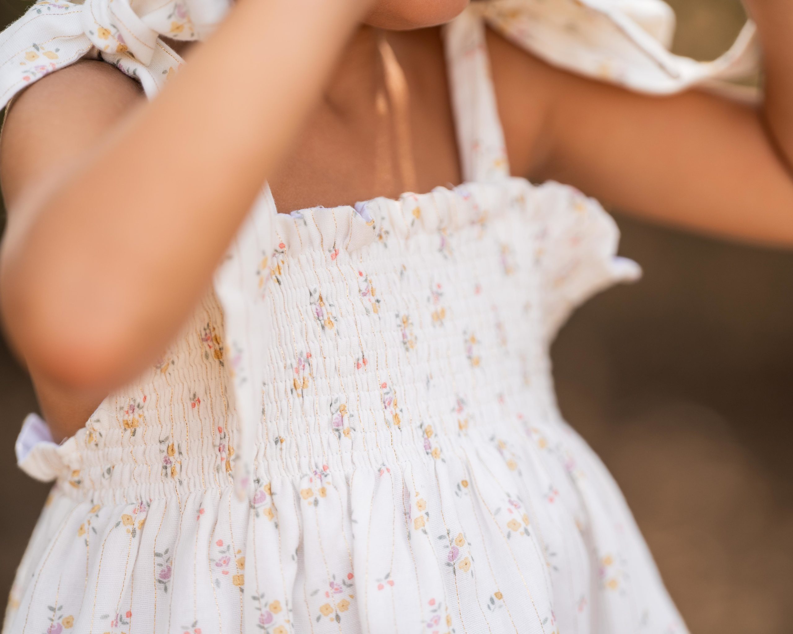 Ideal jesusito de doble gasa con lazadas en rayas lúrex y flores muy favorecedor y muy especial, ideal para el veranito.