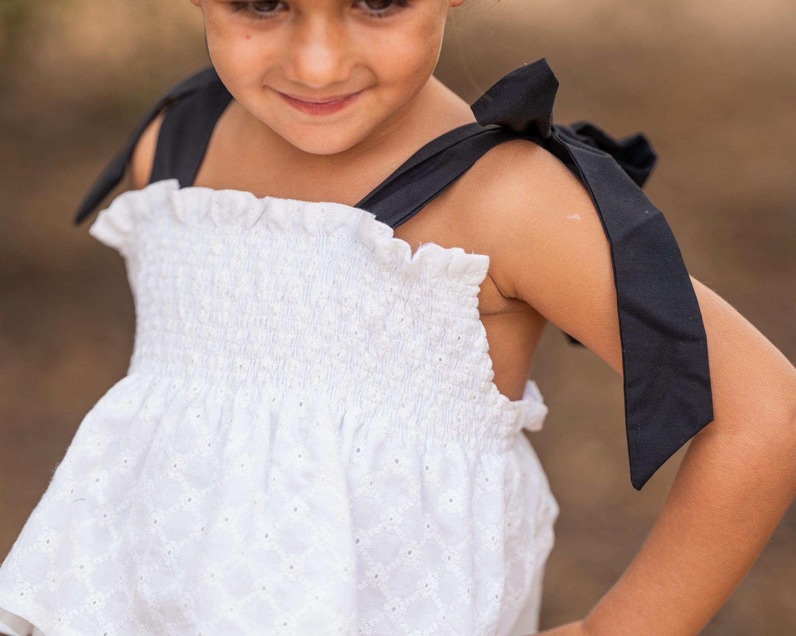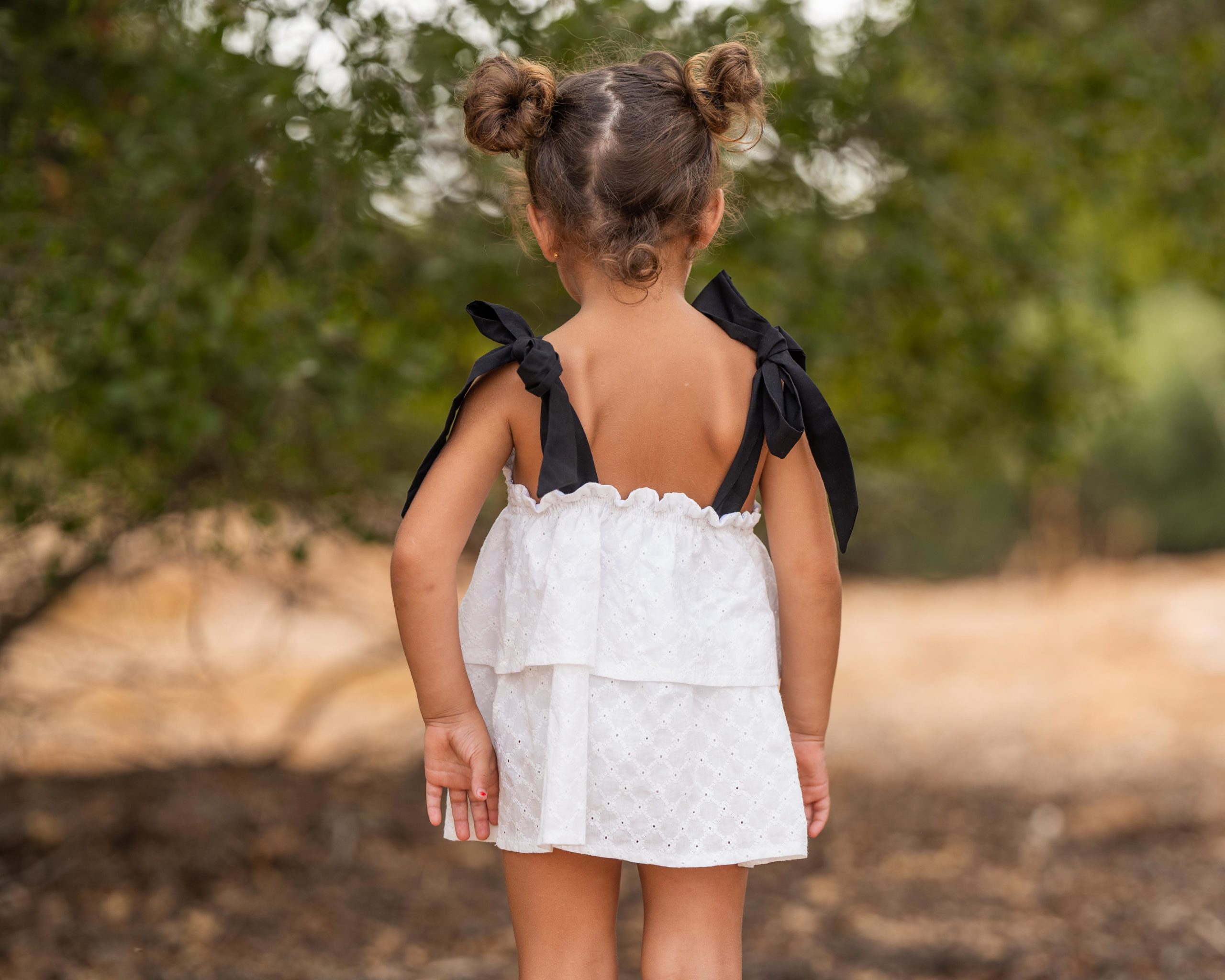 Jesusito de lazos con dos volantes en el cuerpo que lo hacen muy especial por su tejido bordado blanco y su combinación con negro.