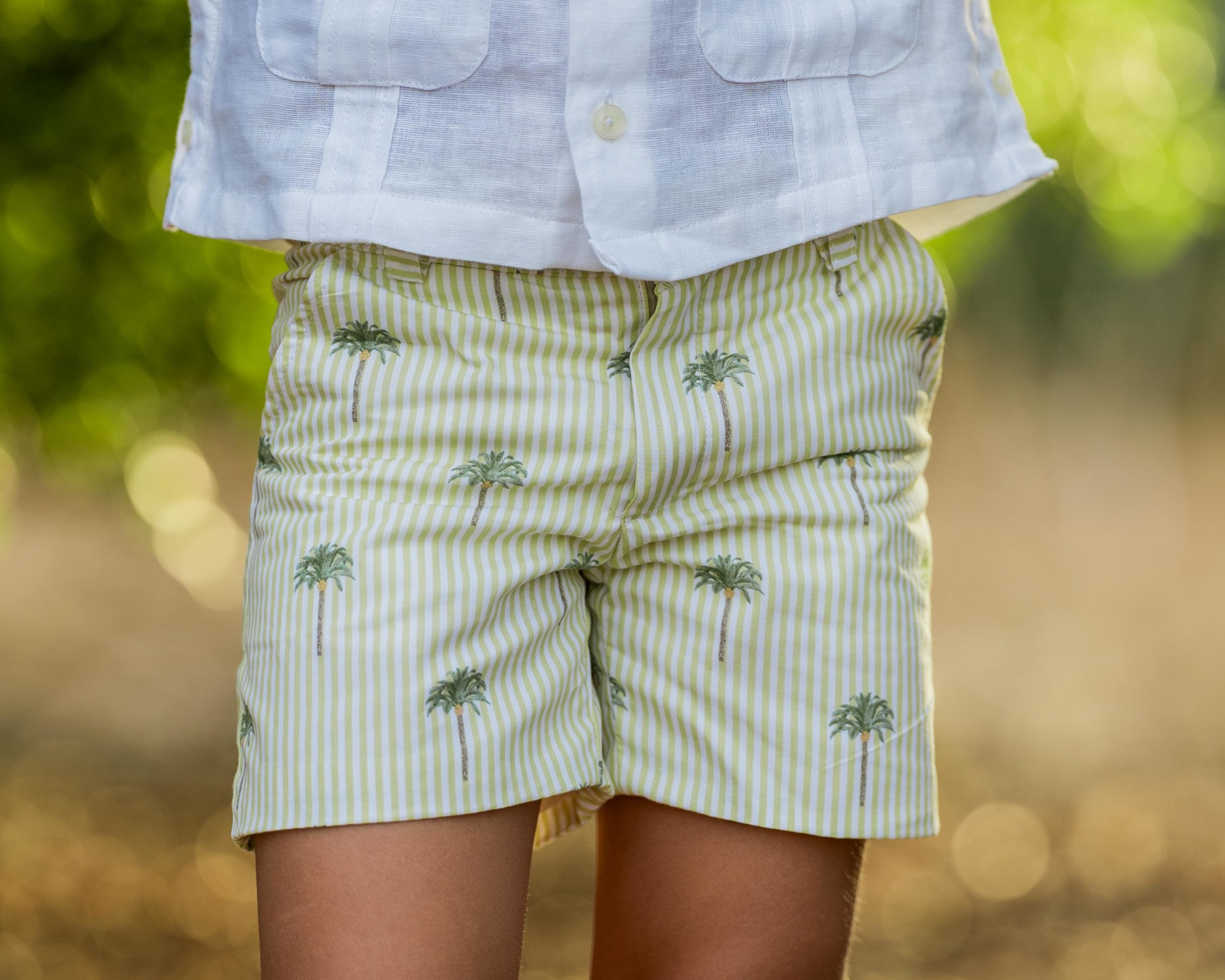 Pantalón en tejido EXCLUSIVO de nuestras míticas palmeras renovadas con rayas verde lima.