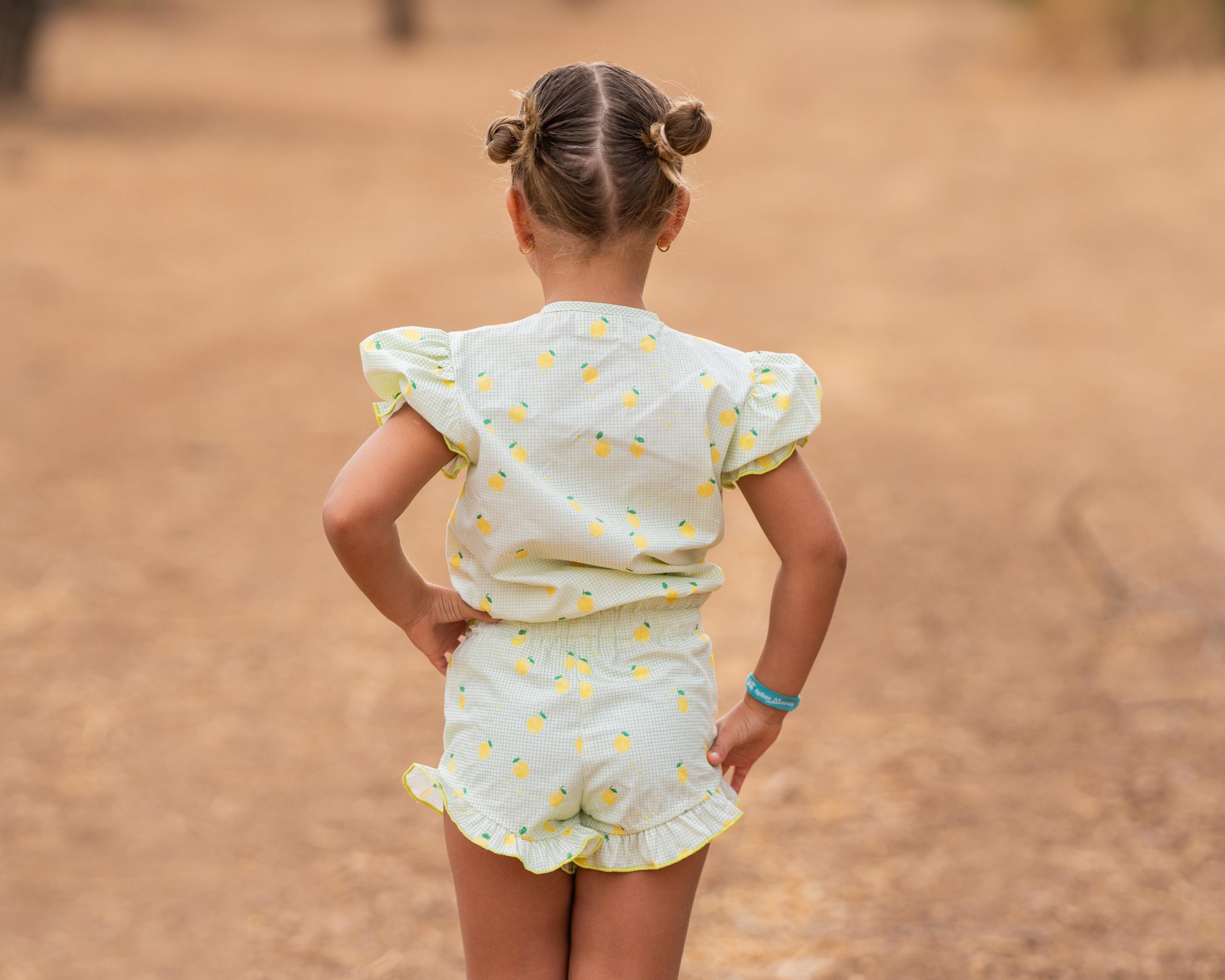 Pantalón corto con terminación de volantines en nuestro estampado exclusivo Sámara.