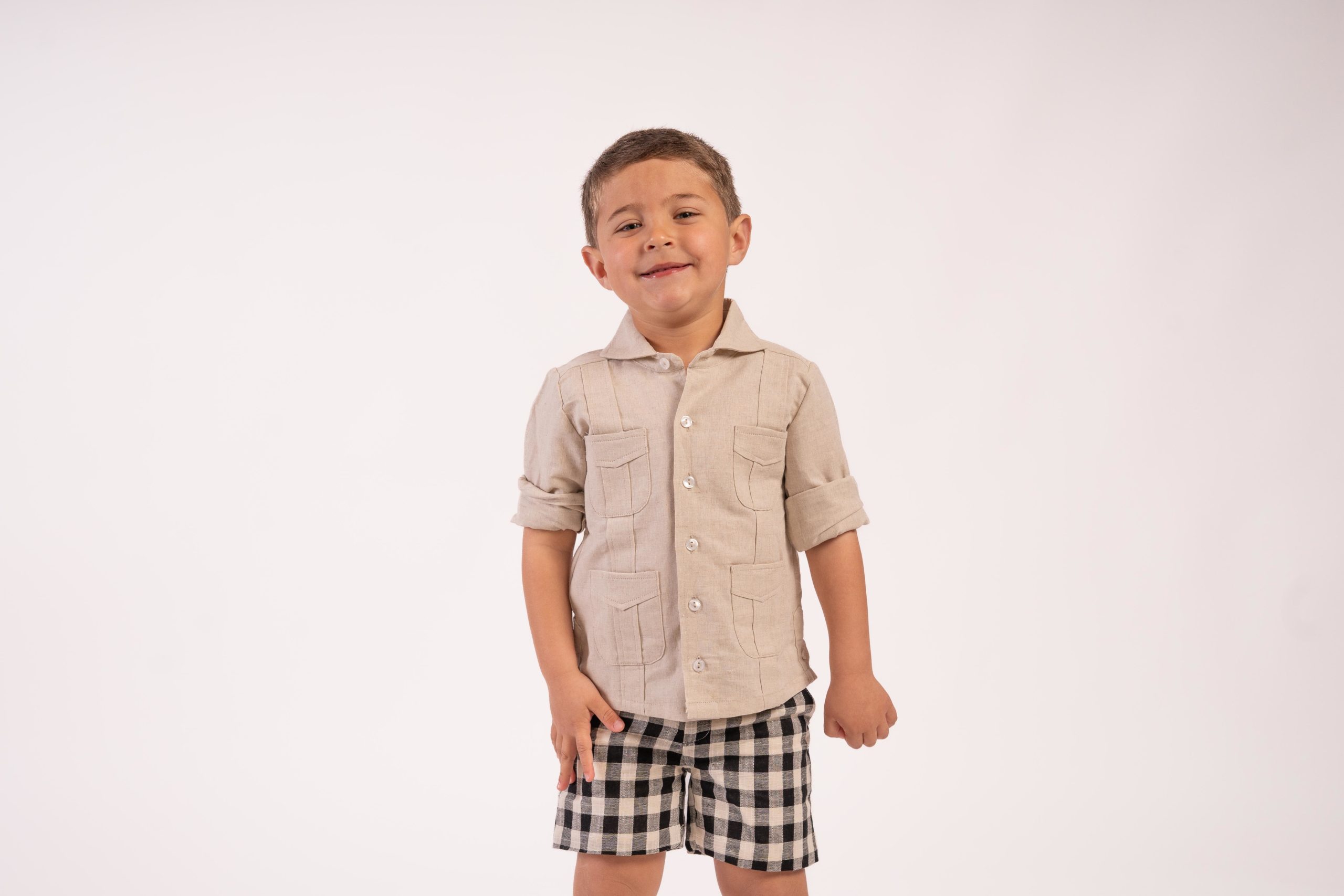 Pantalón corto Vichy negro con fondo en lino ideal para cualquier ocasión. Tiene trabillas.