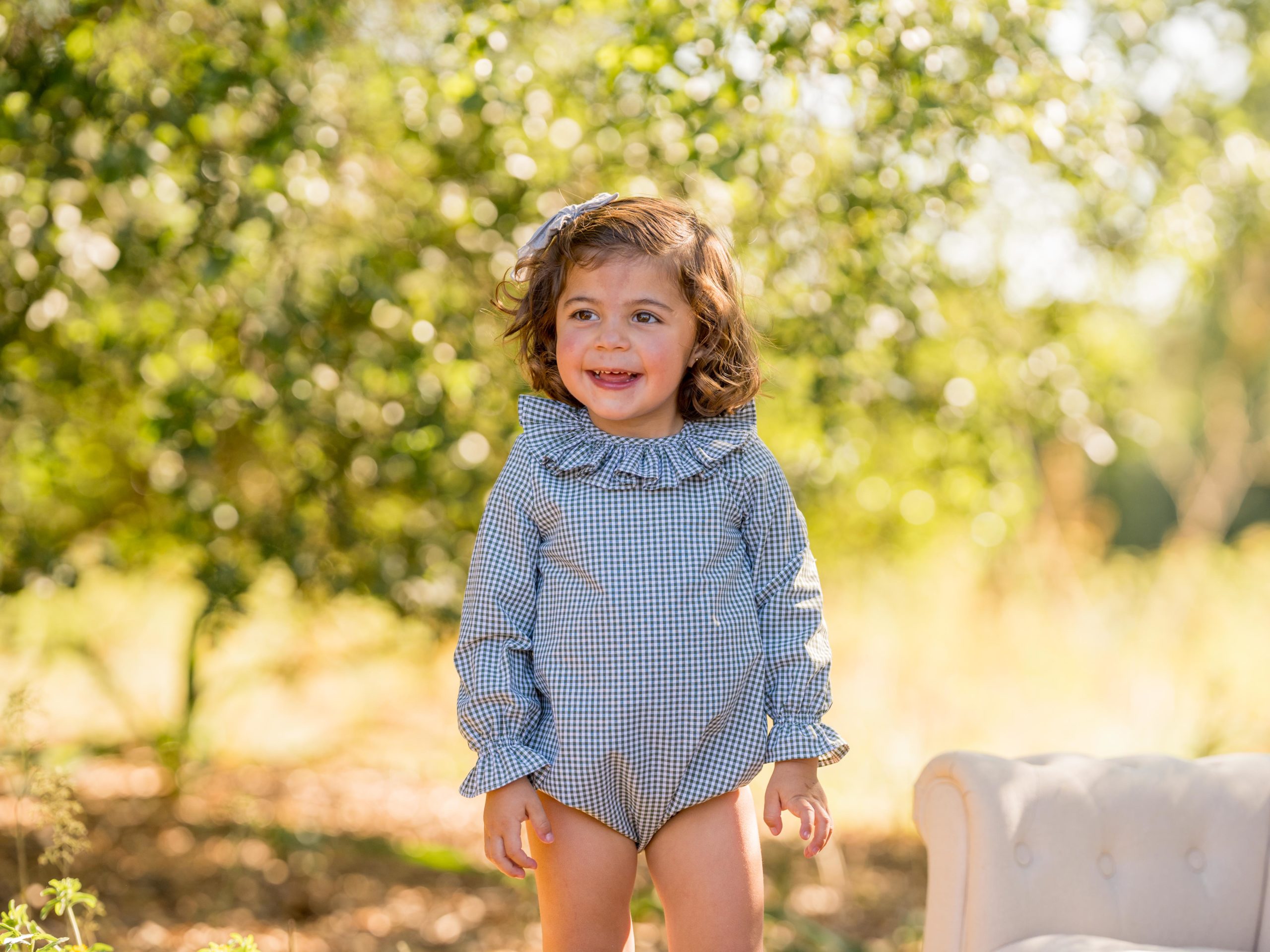 Pelele de manga larga cuadros verdes oxford, un look elegante y favorecedor para nuestros bebés.