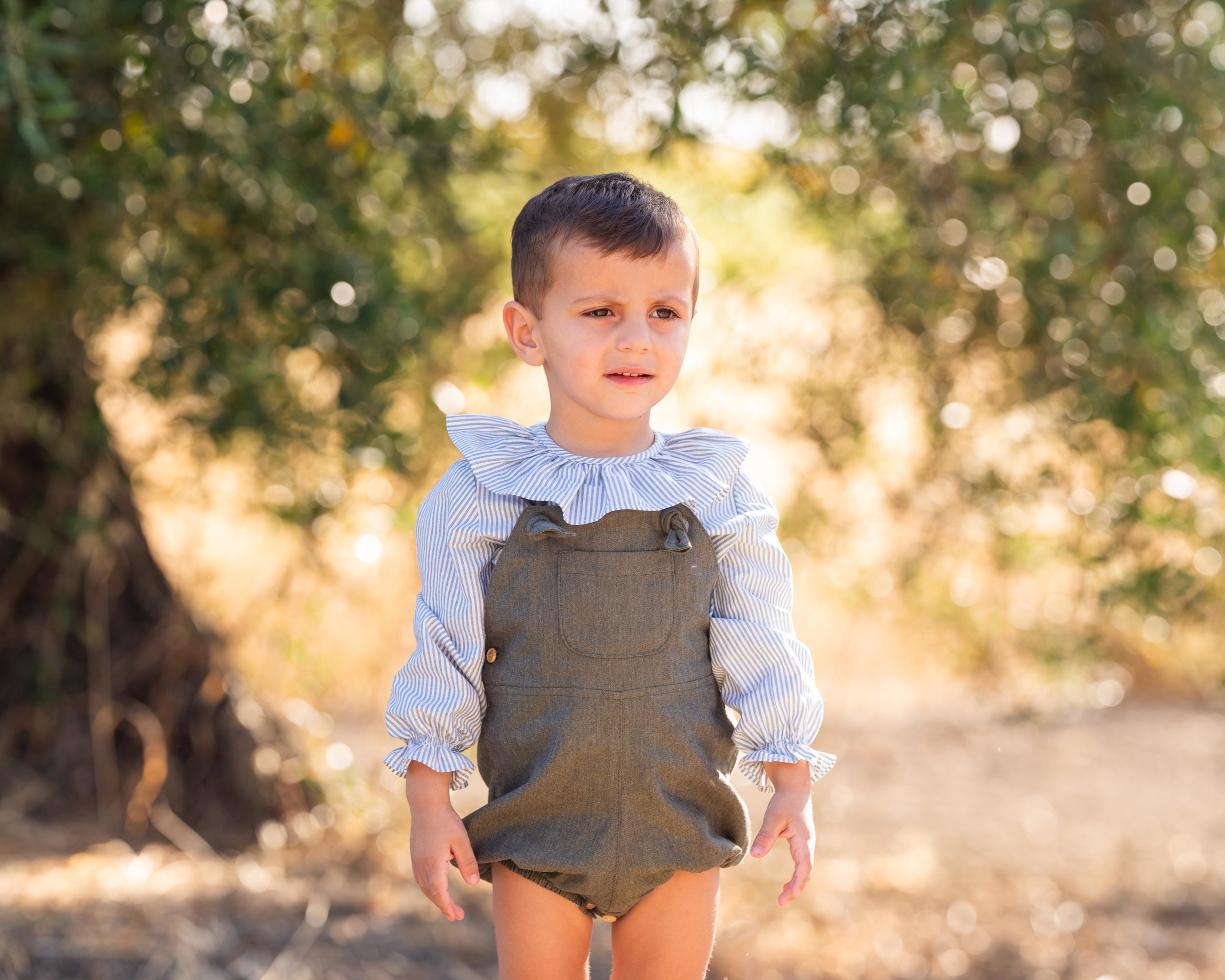 Peto bombacho verde musgo con bolsillo delantero se regula con nuditos.