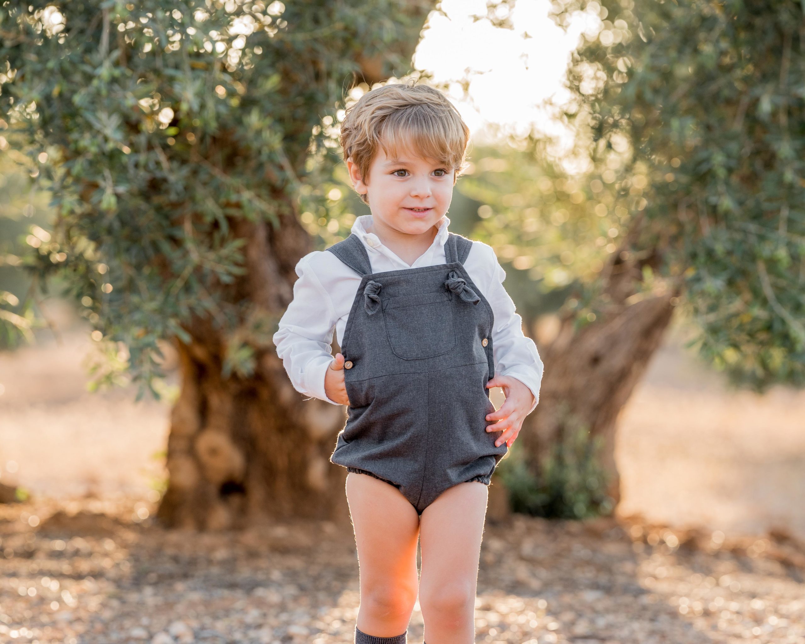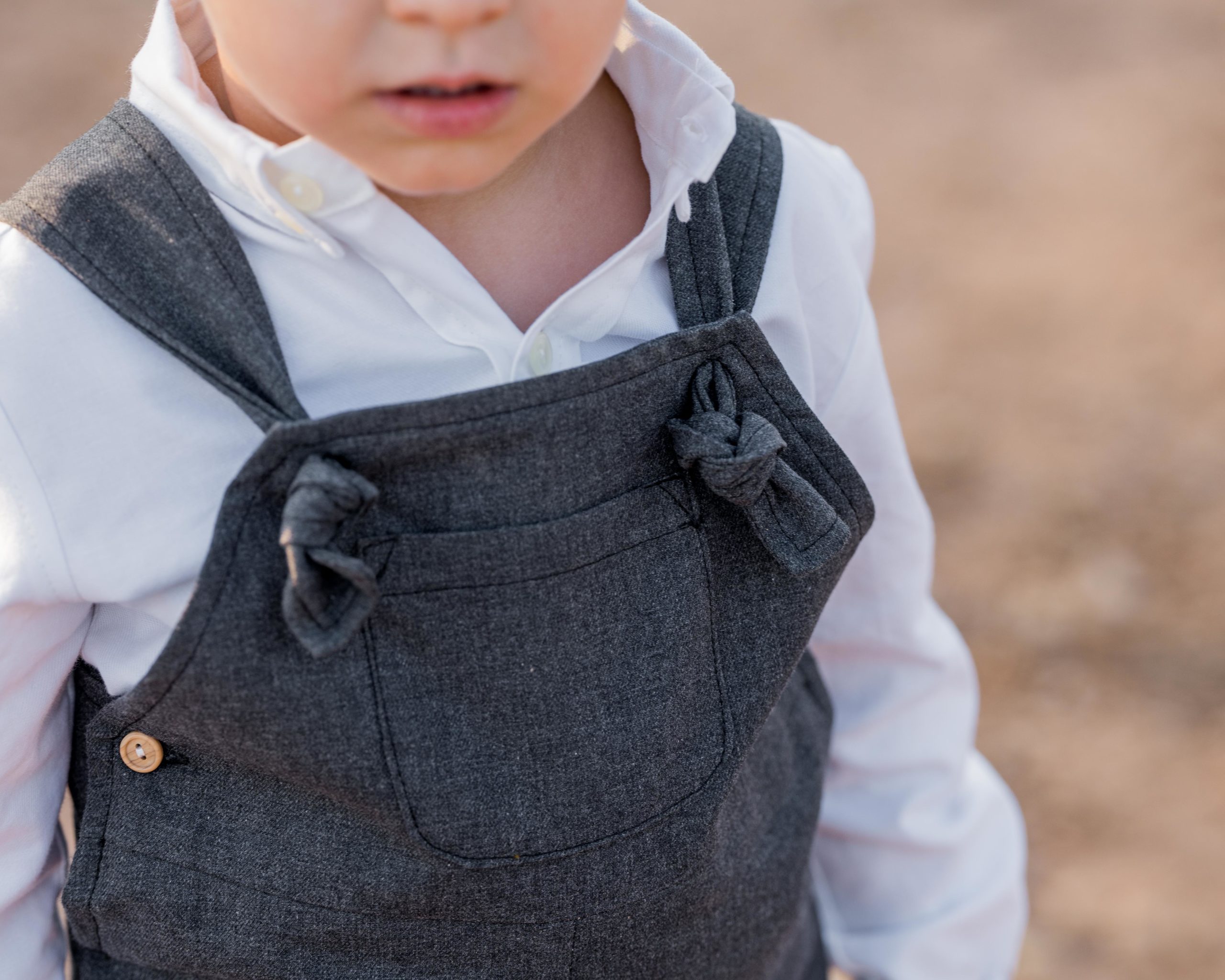 Peto bombacho con bolsillo delantero se regula con nuditos.