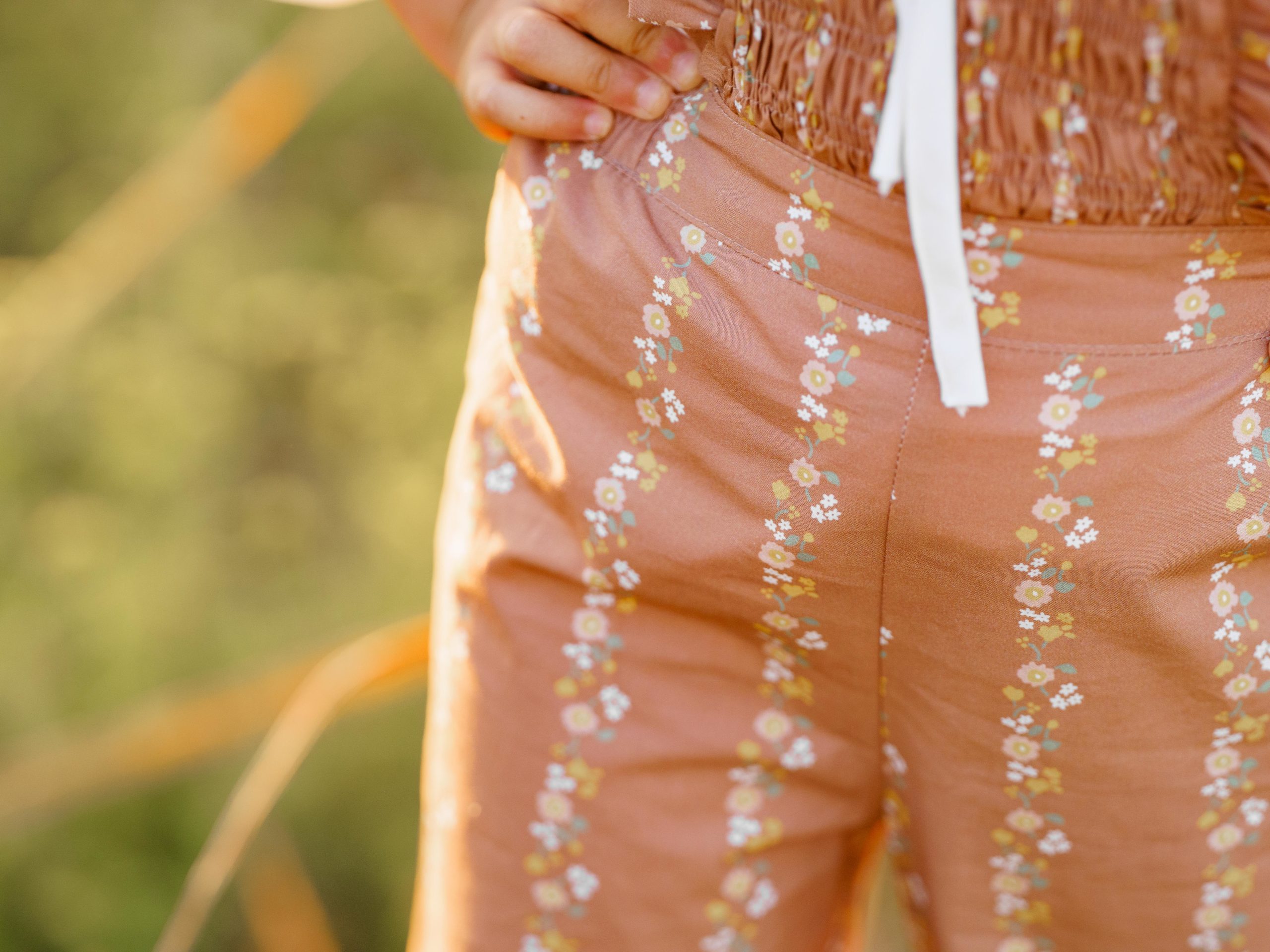 Peto midi de flores en línea en tejido EXCLUSIVO para MIJI, con pecherín fruncido y acabado en volante ideal para este otoño que sienta a nuestras niñas súper ideal.