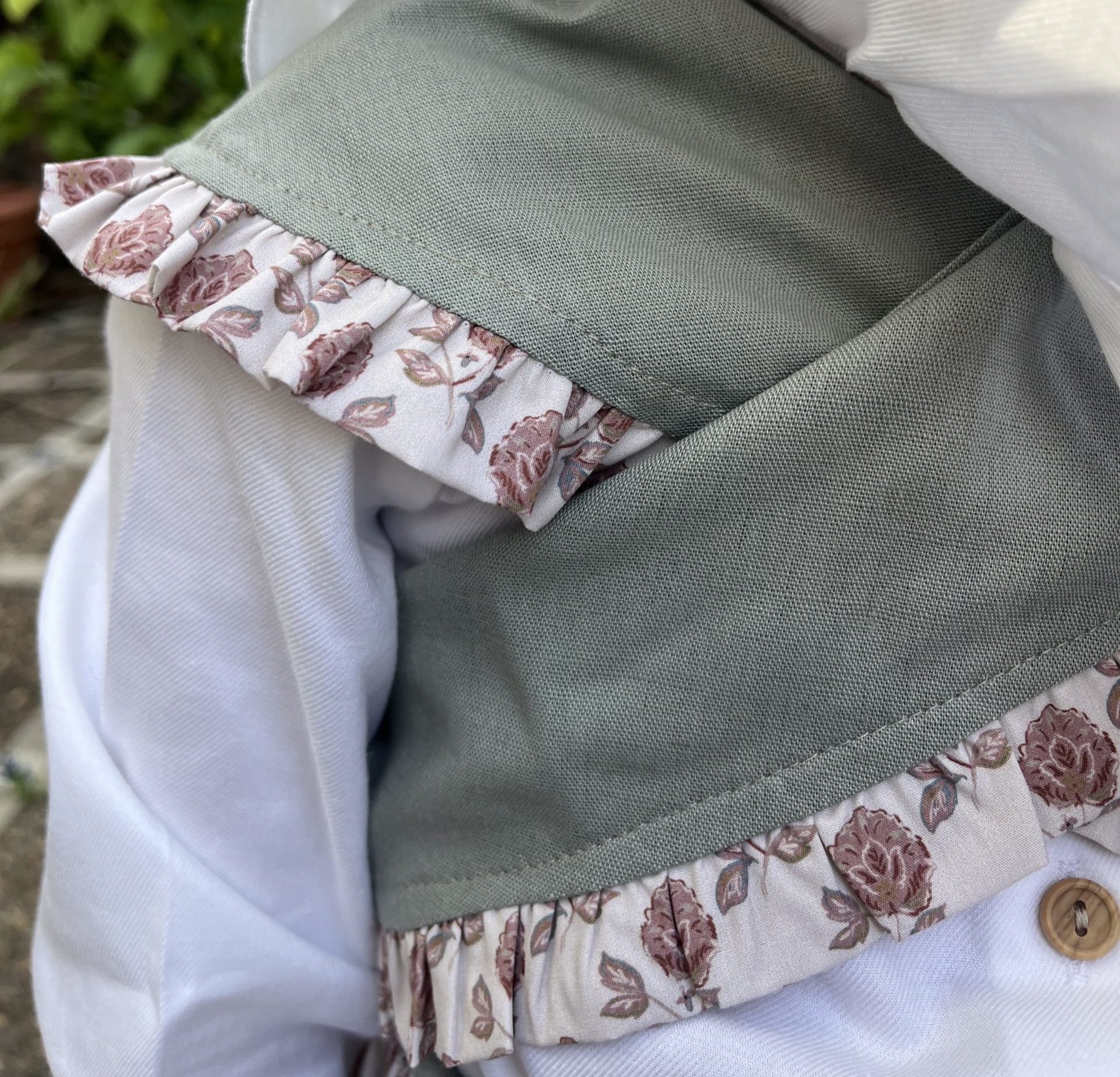 Incluye pañoleta para el pelo, mañanita, falda y delantal.