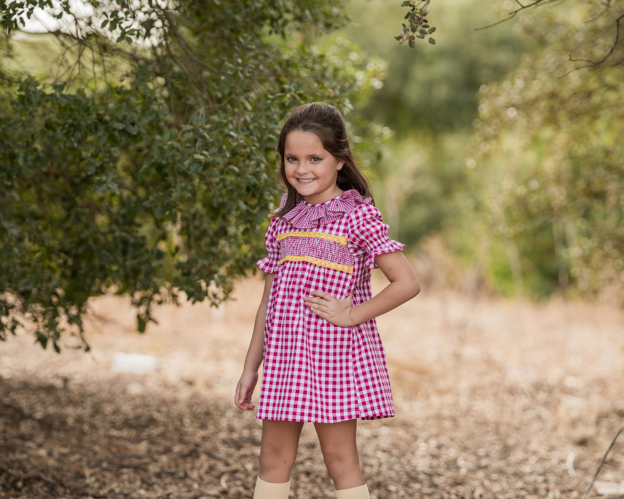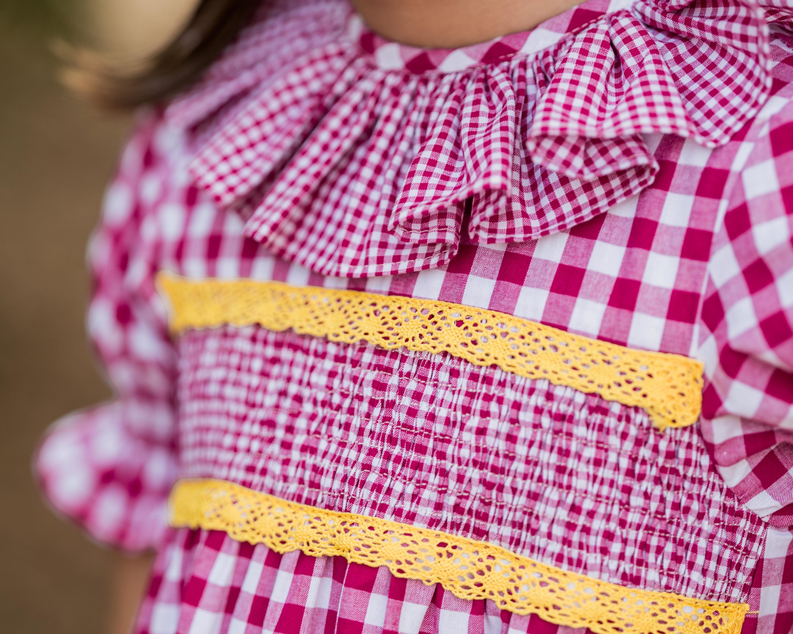 Diseñado en tejido de cuadros frambuesa de distintos tamaños en 100% algodón.